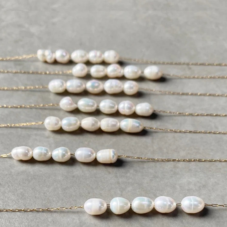 Lustrous pearls and a sleek finish bring a delicate touch to this statement necklace, designed with a minimalist build and non-tarnish durability for a timeless appeal.