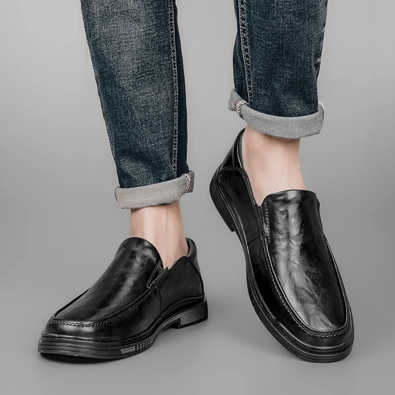 A minimalist silhouette brings maximum styling potential to this loafer, cut from genuine leather with a squared moc toe and a high-grade traction sole, great for a night out or more formal events.