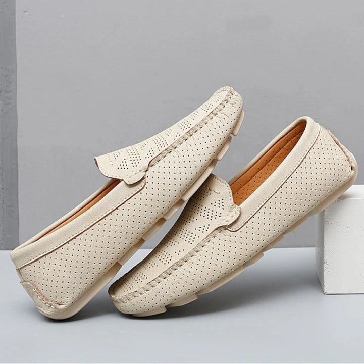 An everyday classic elevated by perforated genuine leather, this refined loafer delivers a lightweight and breathable build, set on a flexible, grippy rubber sole, perfect from office hours to evening dinners.