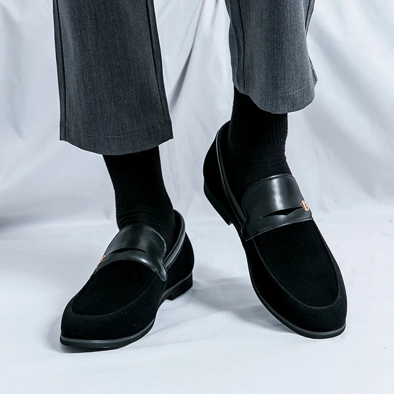 A polished penny-keeper and signature metallic emblem elevate these clean, moc-toe loafers, crafted in premium, soft suede with a comfortable insole, pair perfectly with any outfit, especially a classic pair of jeans.