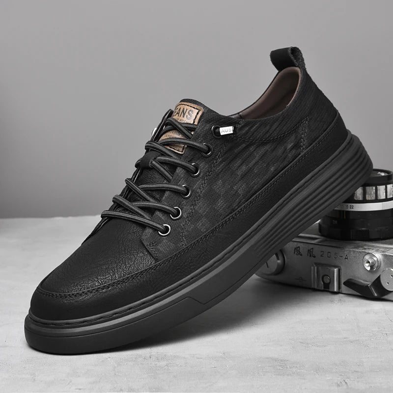 Genuine leather with a matte finish refines this sleek sneaker that brings uniquely patterned side panels and elevated comfort while set on a sculpted sole for a city-ready look.