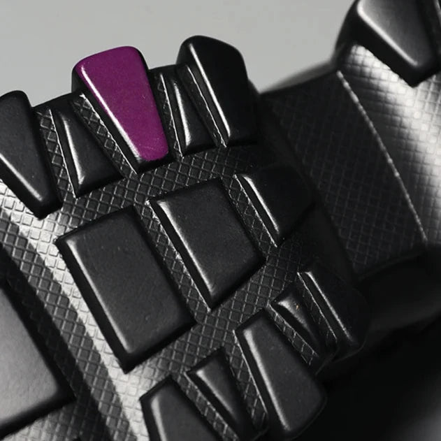These future inspired sneakers balance rugged functionality and bold design. The oversized sole and buckle straps create aggressive and refined look while providing maximum shock absorption. Style them with cargo pants and a windbreaker for street-ready vibes.