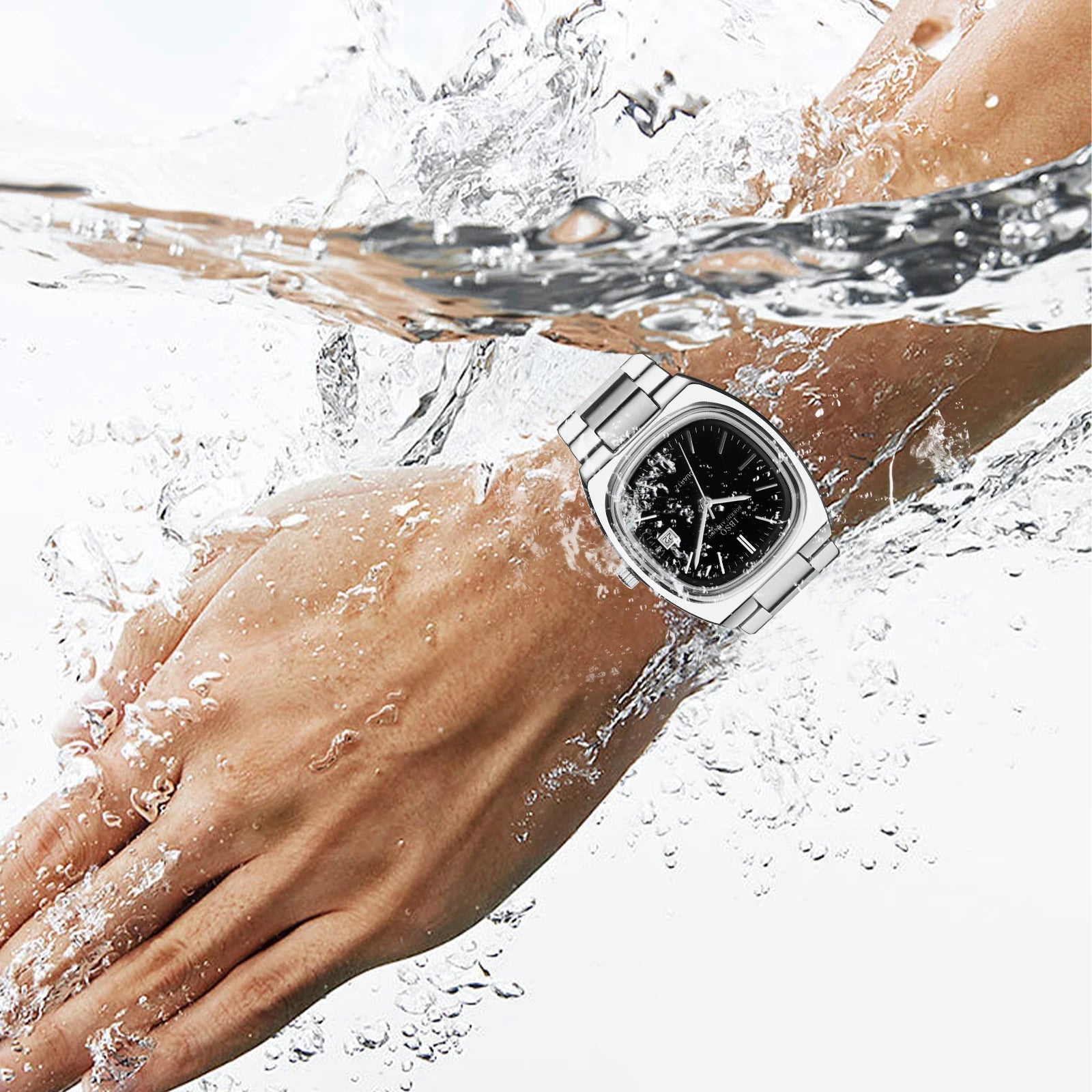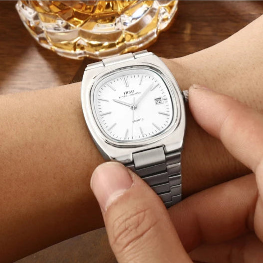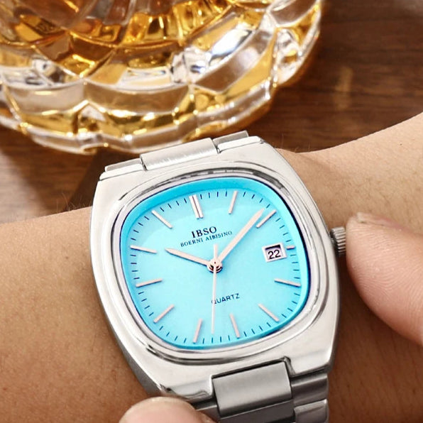 Inspired by vintage aesthetics, this slim profile watch features a unique rounded-square case, a polished stainless steel bracelet, and a vibrant dial, an ideal choice for everyday elegance.