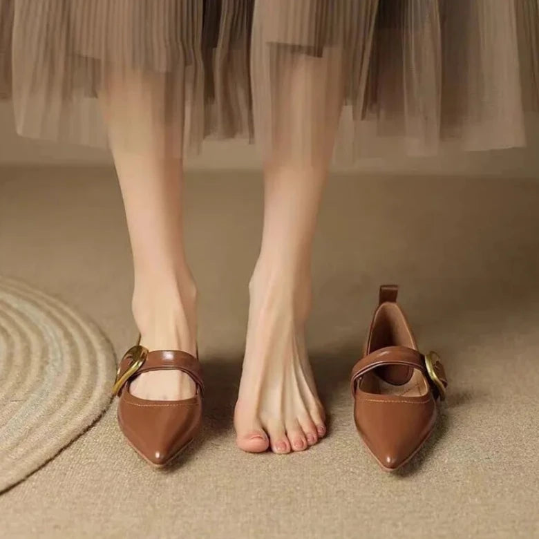 Crafted from smooth polished leather, these slip-ons feature a sleek silhouette and metallic horse-bit buckle.