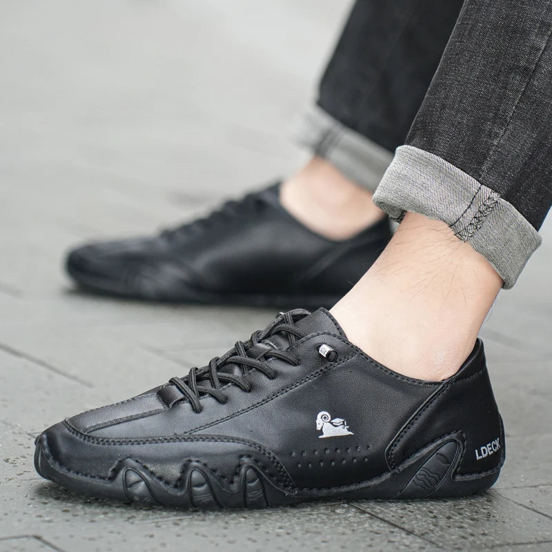 Crafted from supple genuine leather, these shoes aren't just meant to be worn but to be lived in. Each pair showcases a robust construction and a unique wavy sole that provides both incredible grip and comfort. The rich texture of the leather is designed to age well, gaining a unique character over time that reflects the personal history of its wearer. If these aren't the most comfortable shoes in your wardrobe we'll give you a full refund no questions asked.